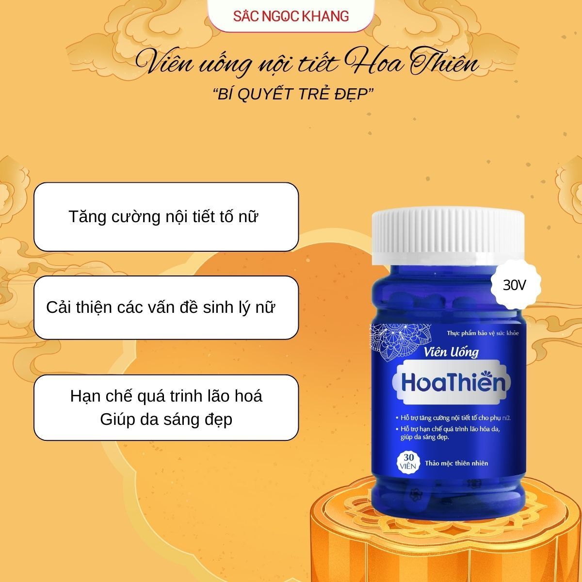 Dựa trên sự phối hợp từ tinh hoa Y học cổ truyền, với các vị dược liệu quý như tinh chất mầm đậu tương, collagen, quy râu, ngưu tất, thục địa, ích mẫu… Viên uống Hoa Thiên giúp bổ sung nội tiết, hỗ trợ 3 vấn đề: tăng cường sinh lý nữ, chống mất ngủ và làm đẹp da.