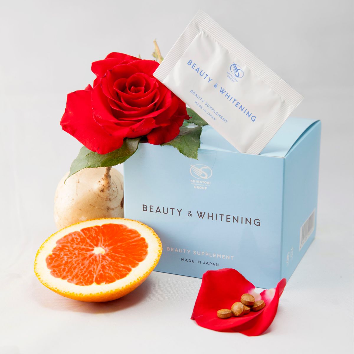 Để giữ da luôn tự nhiên, tươi trẻ và trắng mịn thì các chị em cần phải uống nhiều nước thường xuyên, sử dụng kem dưỡng, kem chống nắng hàng ngày... Tuy nhiên, những công đoạn đó lại chiếm nhiều thời gian và đôi khi chúng ta lại không thể thực hiện một cách liên tục để mang lại kết quả tốt. Viên uống trắng da chống nắng Shiratori Beauty & Whitening được chiết xuất từ trái cam đỏ - 1 loại quả cực kì giàu vitamin C kết hợp với nhiều thành phần làm đẹp khác như Collagen, HA, Sâm tố nữ,.. và hàng tá các loại Vitamin giúp tăng khả năng chống nắng ngay từ bên trong cơ thể, đem đến một làn da sáng khỏe, mềm mịn, căng mịn, trắng trẻo, hồng hào.