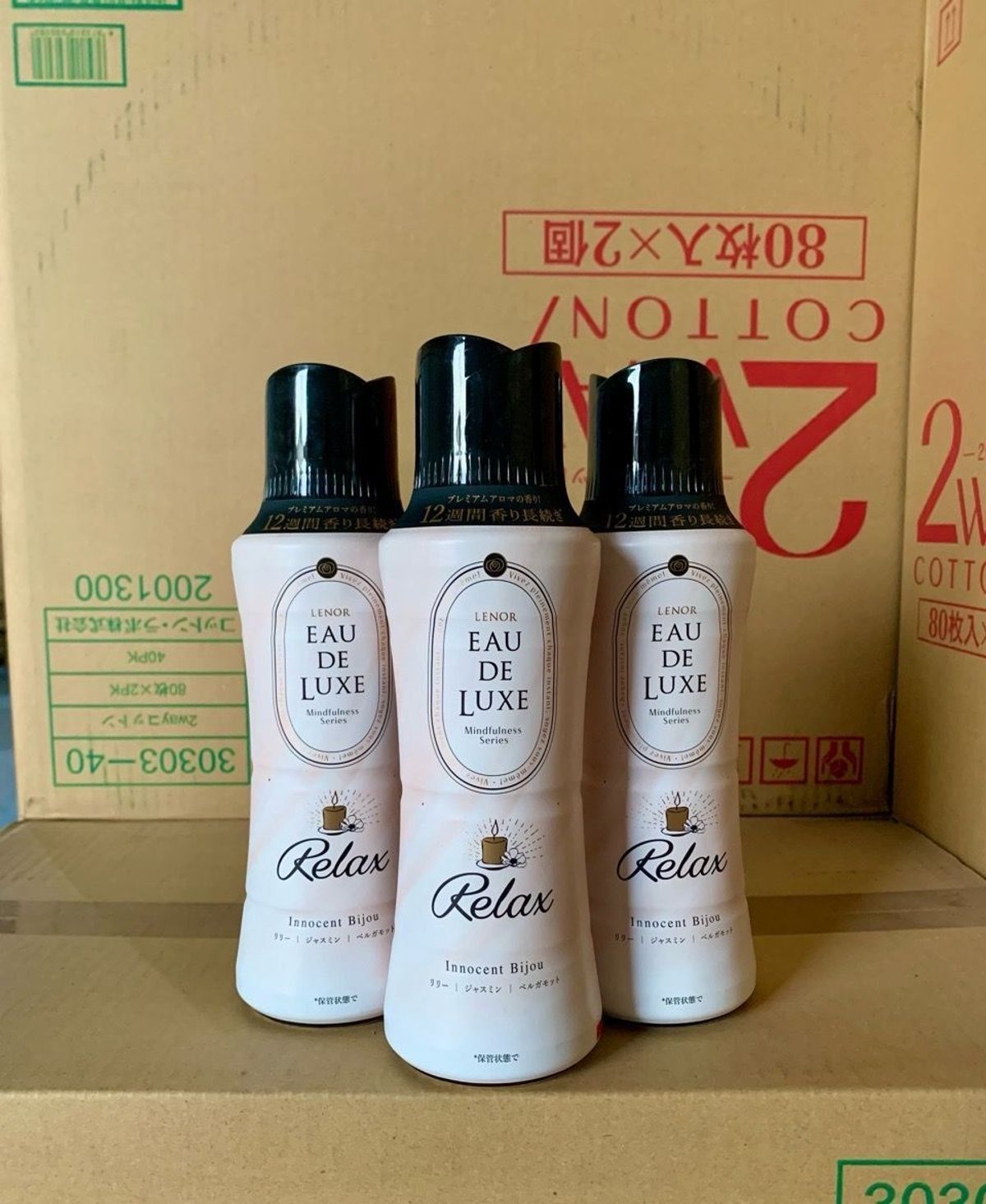 Viên Xả Vải Khô Lenor Eau De Luxe Nhật Hương Nước Hoa 520ml: Viên xả vải Luxe nội địa Nhật bản với mùi hương cực kỳ sang trọng và quyến rũ. Viên giặt xả với tác dụng làm mềm và tạo hương thơm tự nhiên cho quần áo, đặc điểm an toàn cho mọi chất liệu vải, không làm mất màu ban đầu của quần áo. Hương thơm nhẹ nhàng dễ chịu không bị nồng sẽ được lưu giữ suốt ngày dài năng động . Đặc biệt, hiệu quả của viên xả khô còn giúp quần áo không bị nhàu và nhăn, với hương thơm được cô đặc thành viên nên dùng rất sạch và tiết kiệm, giữ mùi thơm cực lâu trên quần áo.