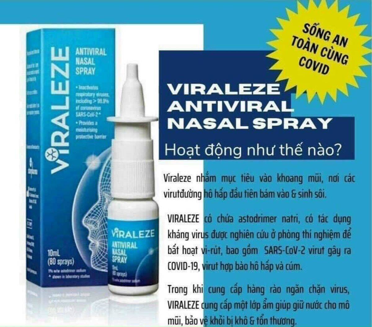 Xịt mũi Viraleze - sản phẩm của Bỉ và được phát triển tại Úc của StarPharma.