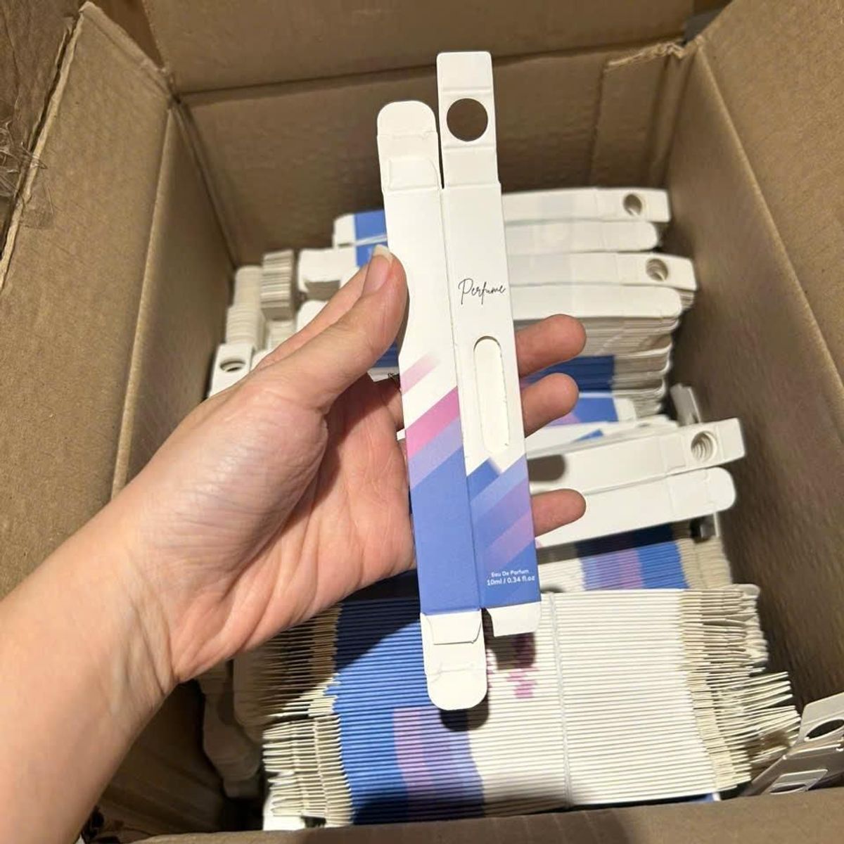 Thiết kế độc quyền: Vỏ hộp được thiết kế với cửa sổ độc đáo, mang lại vẻ sang trọng và tiện lợi. Kích thước 2x2x12cm phù hợp để đựng chai thủy tinh 10ml.