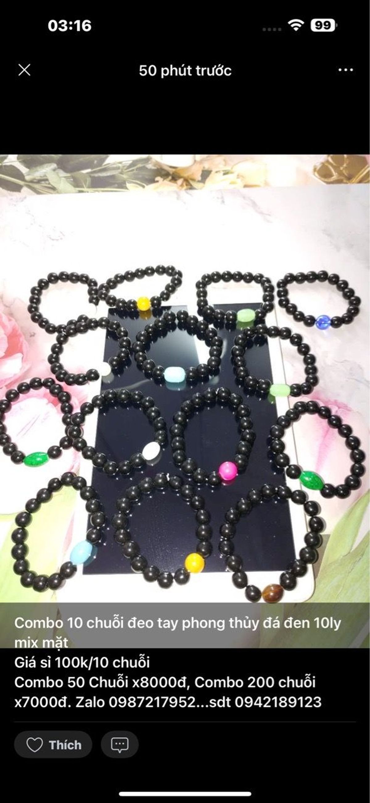 Vòng chuỗi đeo tay phong thủy đá đen 10 ly mix hạt giá sỉ - giá bán buôn
