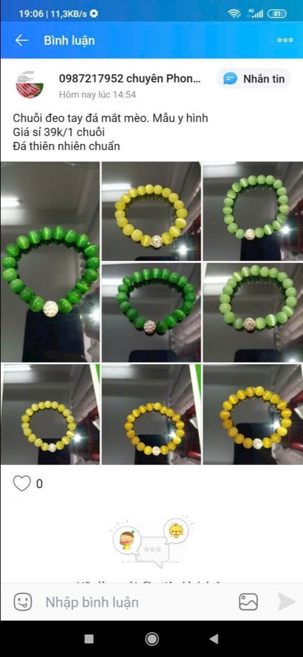 Vòng đeo chuỗi đá mắt mèo 10ly mix hạt châu xinhgiá sỉ 39k