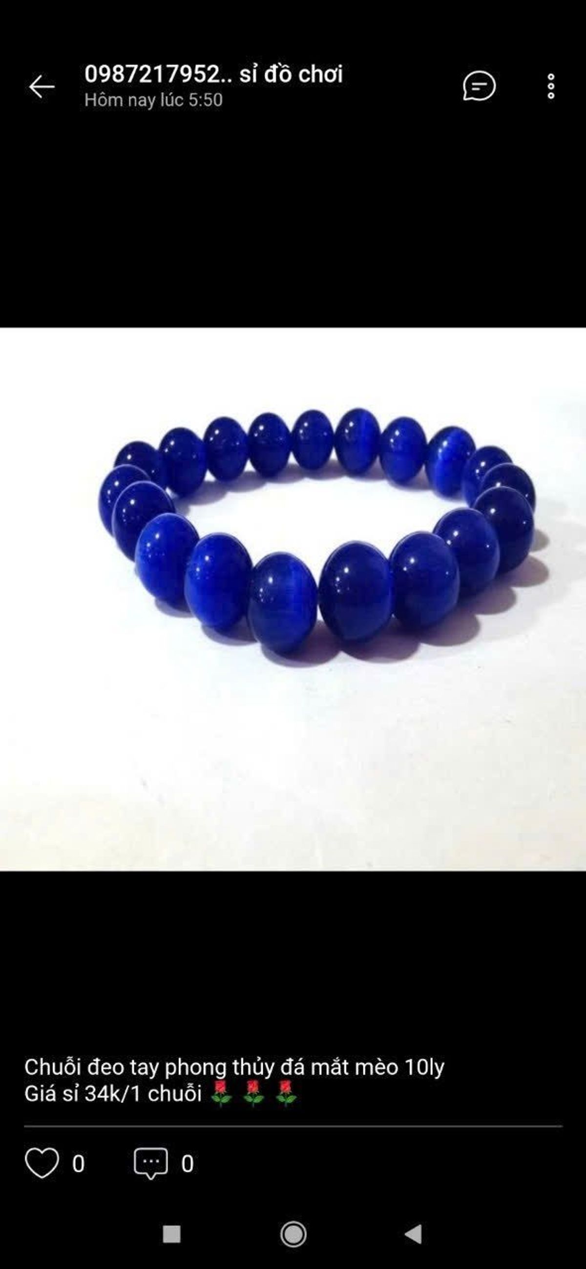 Vòng phong thủy chuỗi đá mắt mèo 10ly màu xanh dương giá sỉ/bán buôn