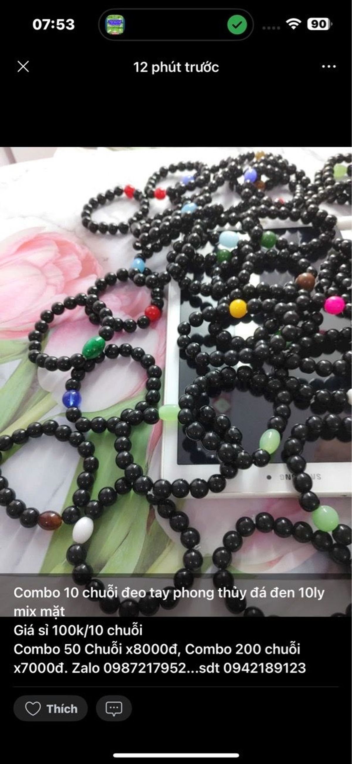 Vòng tay chuỗi đeo tay phong thủy đá đen mix hạt giá 8000₫ giá sỉ/bán buôn