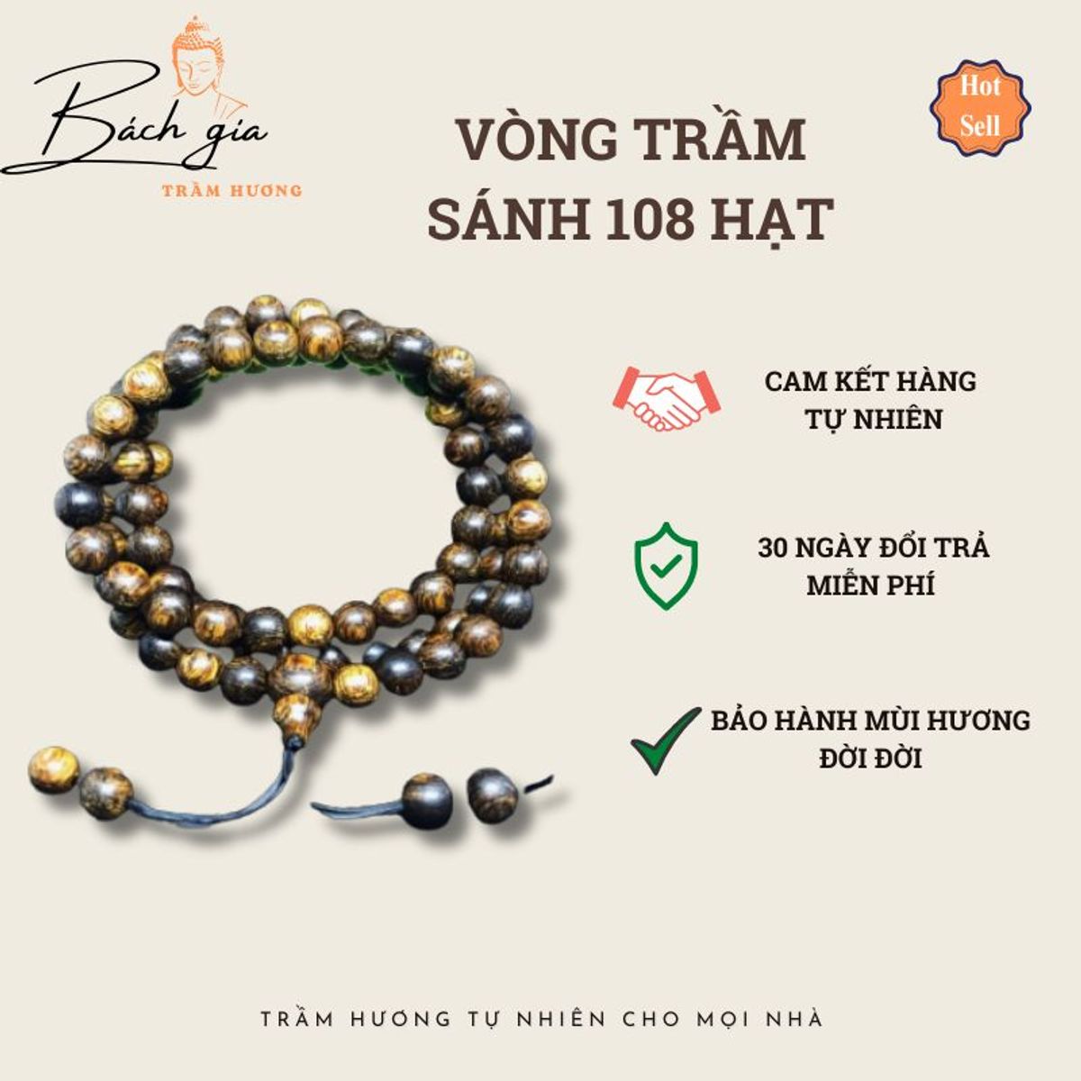Vòng tay chuỗi hạt trầm hương 108 hạt sánh chìm mùi thơm thanh dịu 6mm 8mm Bách Gia Trầm Hương