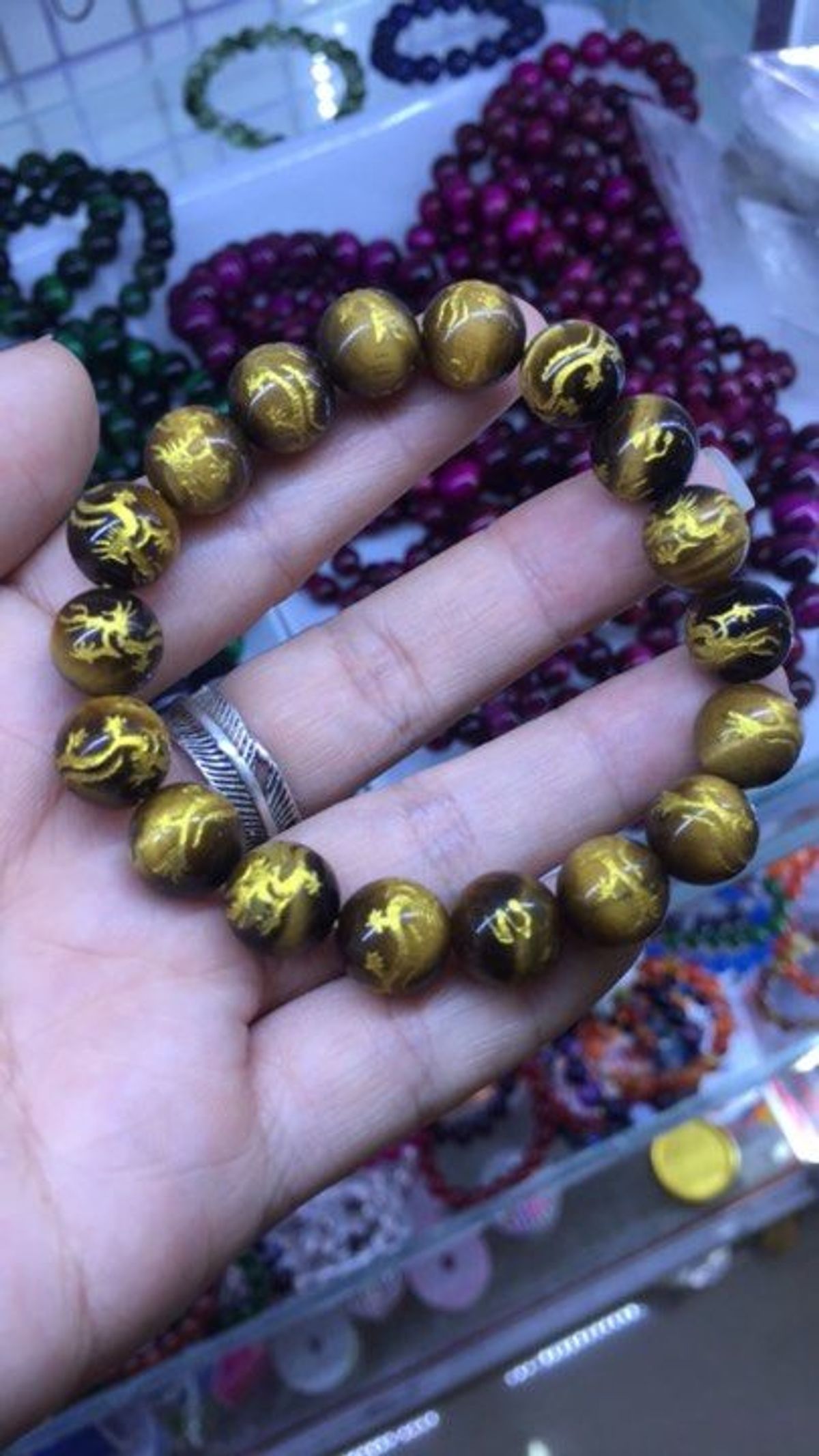 Vòng tay mắt hổ khắc rồng - MSP 334 giá sỉ - giá bán buôn