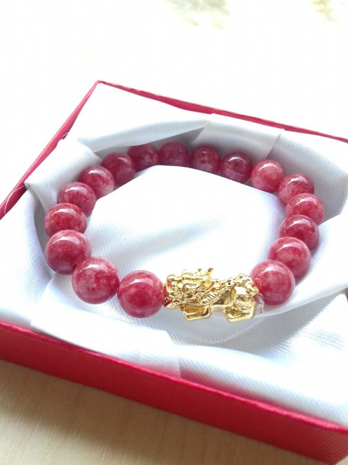# Đá bán quý thạch anh Granet hồng tím, điểm nhấn tỳ hưu vàng
