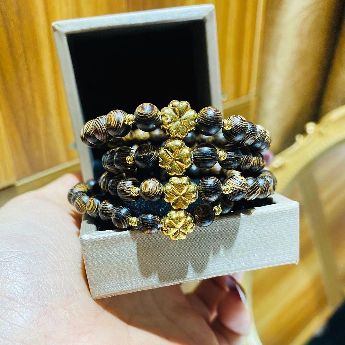 Tên sản phẩm: vòng tay trầm hương sánh chìm thiên nhiên phối cỏ bốn lá vàng tây 10 kara - thắng giang