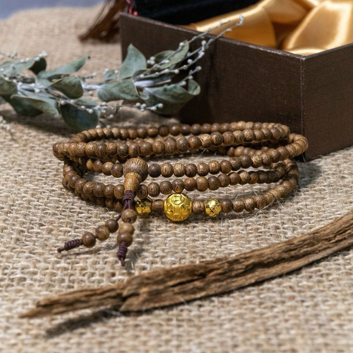 Vòng Trầm Hương Thiên Nhiên Phong Thủy 216 hạt 4li mix charm VIP giá sỉ/bán buôn