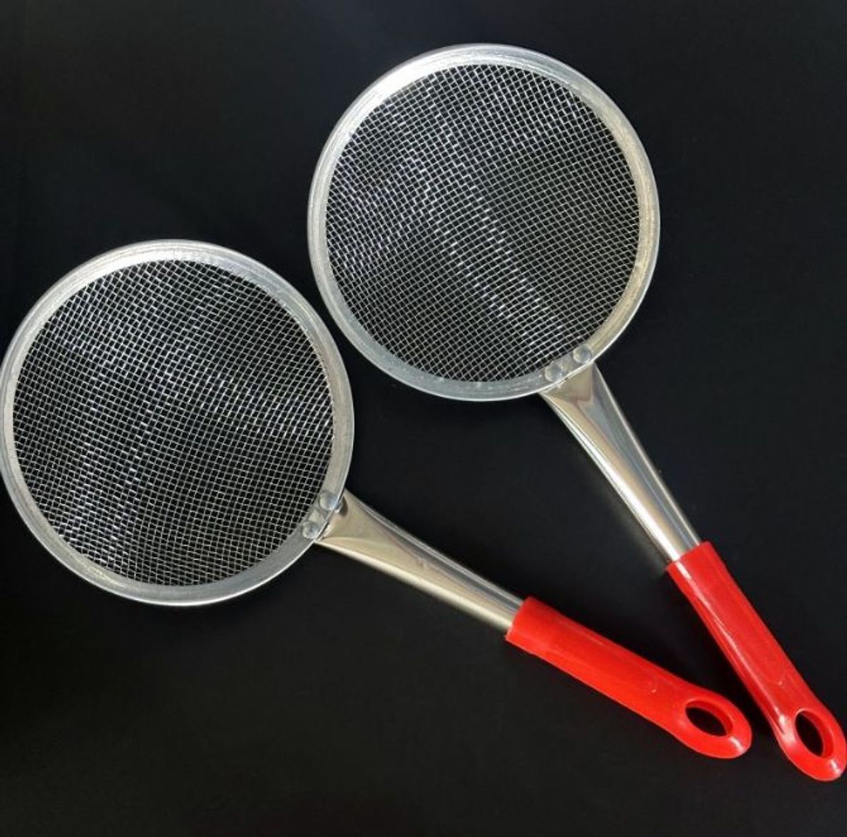 - Màu sắc: Lưới inox bạc kết hợp tay cầm màu đỏ nổi bật, hiện