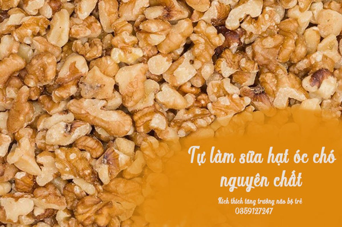 -Bước 1: Ngâm 100gr vụn hạt óc chó với nước sạch trong 4 giờ.