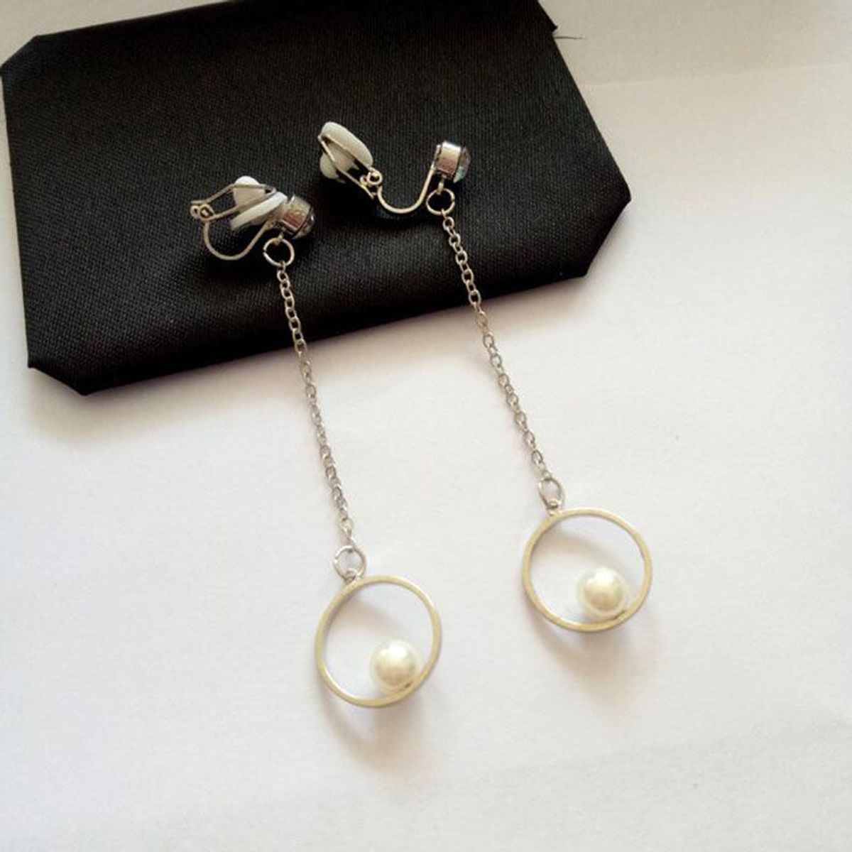 W85 Bông tai kẹp buông rũ đính đá nữ tính