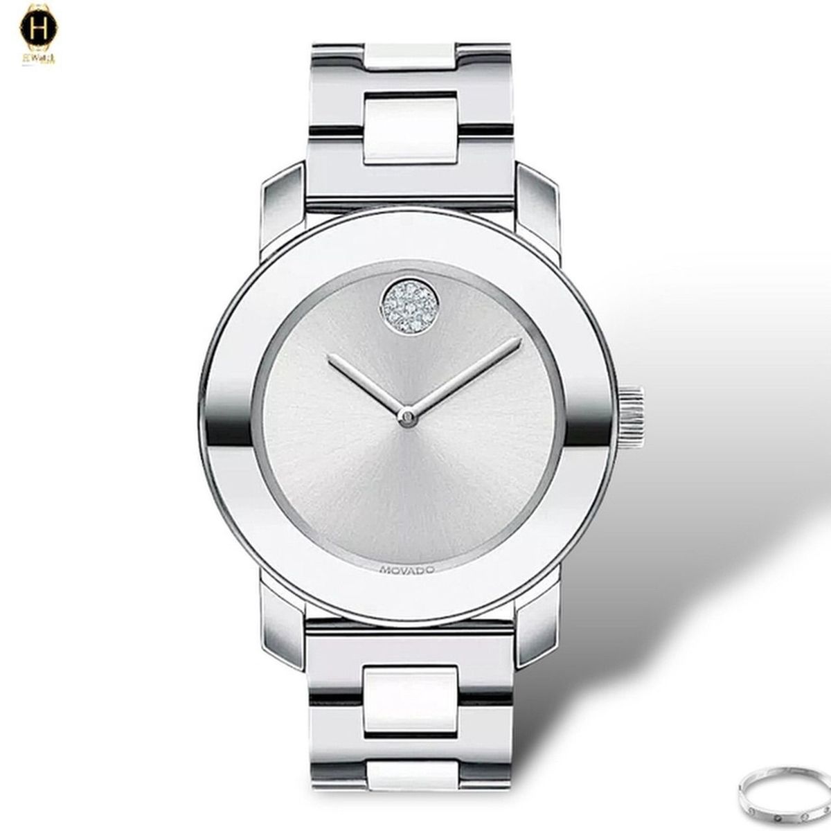 🔺Thiết kế đơn giản là mặt không số, đính diamond đỉnh 12h đem đến cho người dùng sự tinh tế, hoàn hảo khi đeo lên tay.