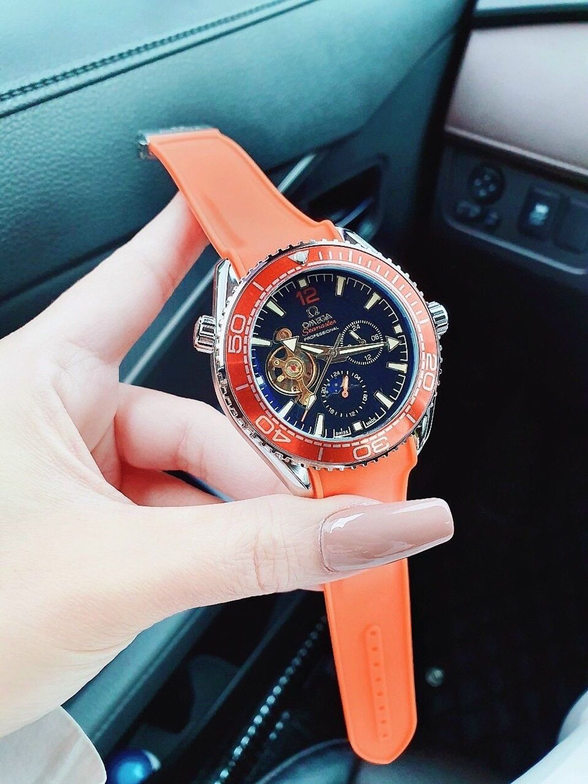 XẢ RẺ ĐỒNG HỒ NAM TRUNG CẤP ÔMEGHA CƠ DÂY CAO SU MÀU CAM giá sỉ/bán buôn