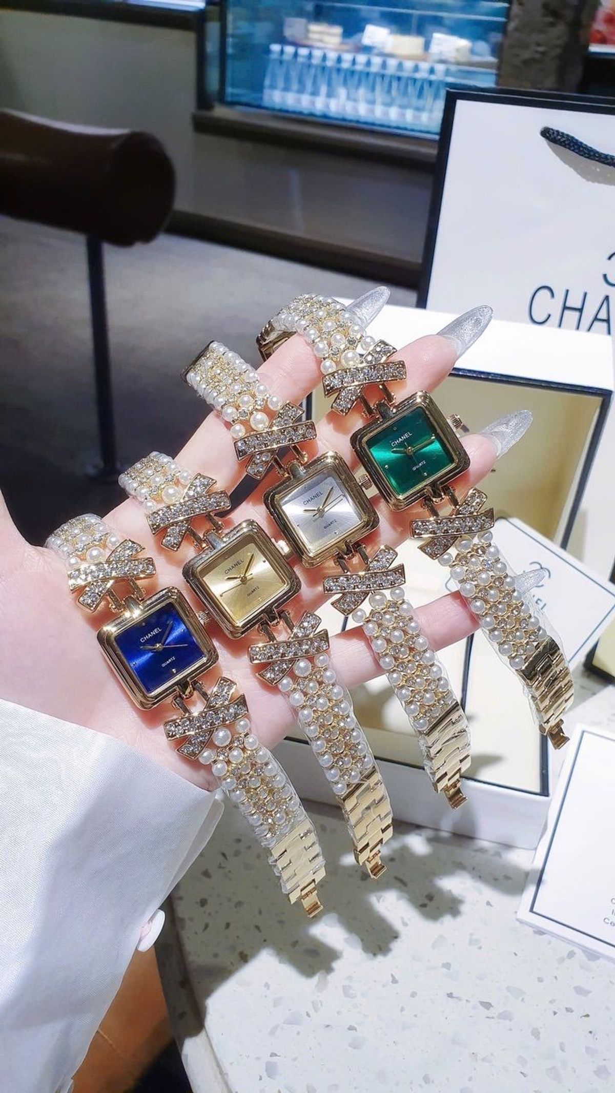 XẢ RẺ ĐỒNG HỒ NỮ THỜI TRANG CHANEU MẶT VUÔNG DÂY KẾT NGỌC TRAI giá sỉ/bán buôn