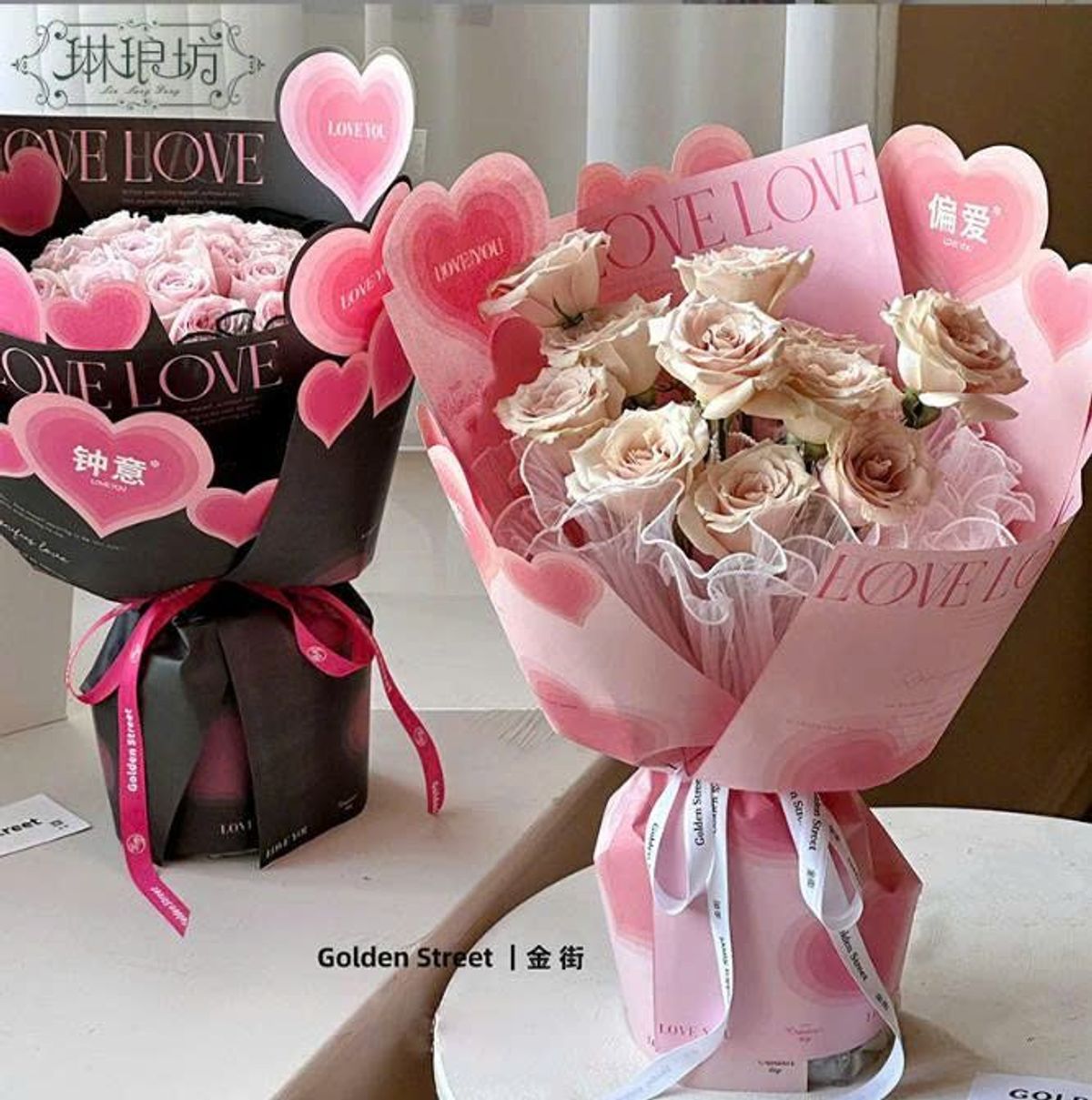 XẤP 10 TỜ GIẤY GÓI HOA TRÁI TIM (35x50)cm giá sỉ - giá bán buôn