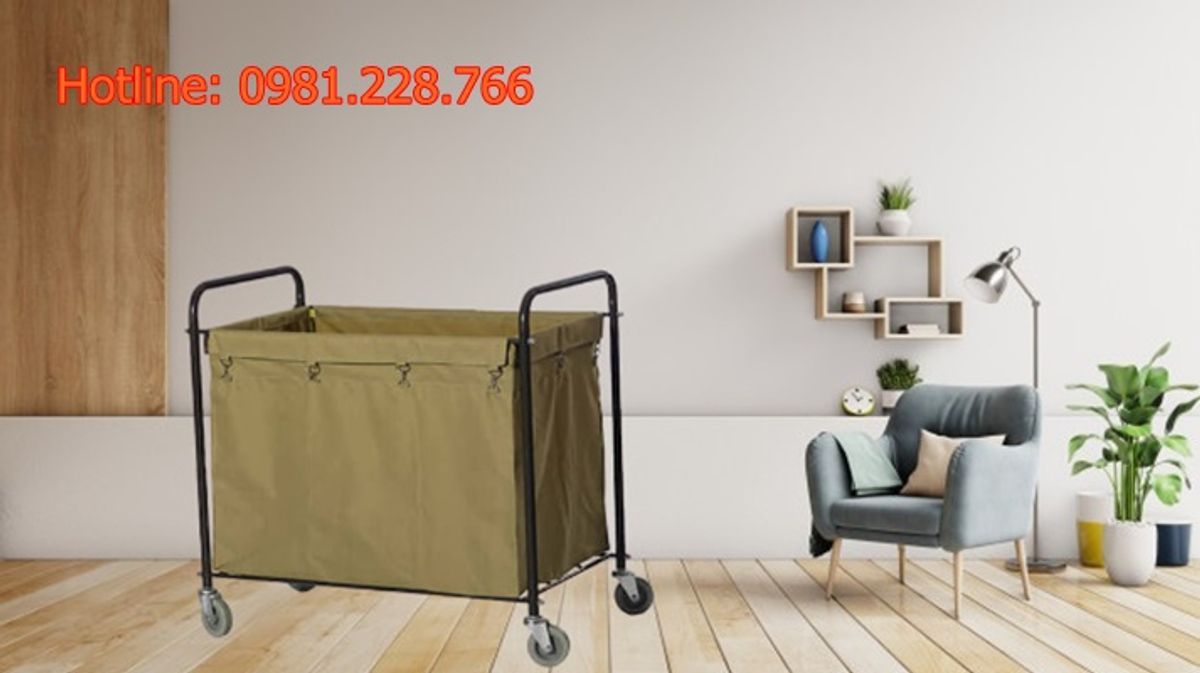 Đặc điểm nổi trội của xe chở đồ giặt là khung inox vải bạt