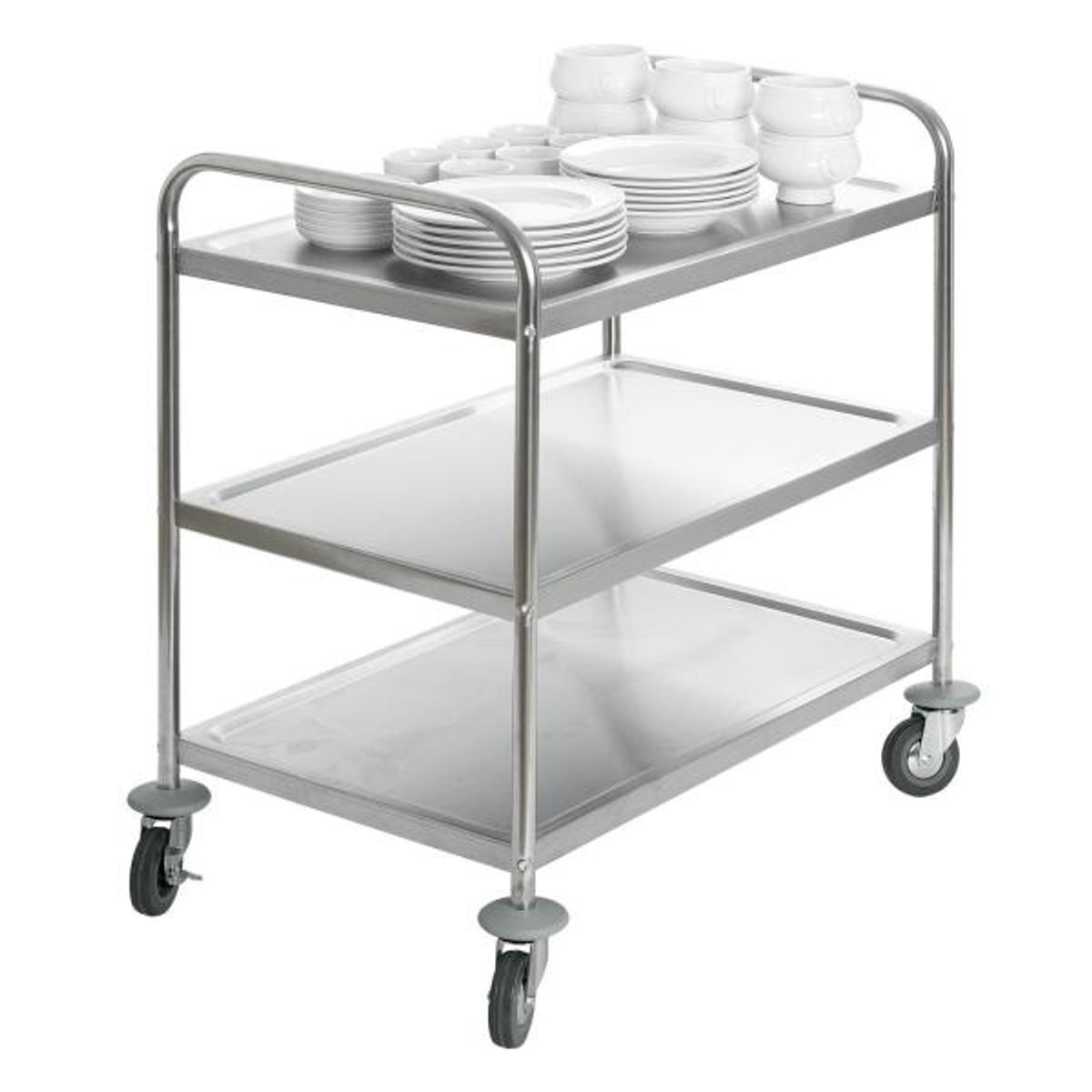 Xe đẩy thức ăn gồm nhiều tầng, trên các tầng có lan can giúp thức ăn không bị văng ra ngoài, tựa như 1 chiếc bàn đưa các món ăn di chuyển nhanh chóng. Trong nhà hàng, khách sạn có các sự kiện tiệc lớn thì tốc độ phục vụ bàn của một nhân viên phục vụ không thể bằng 1 chiếc xe đẩy thức ăn.