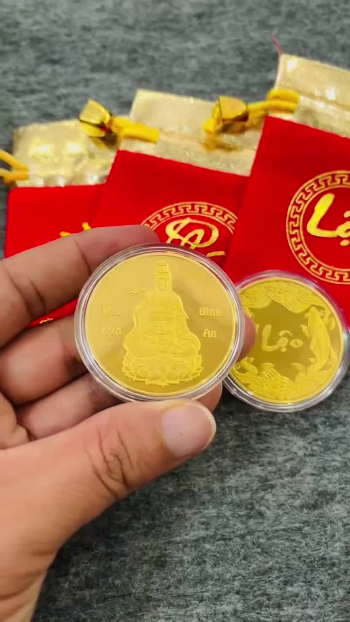 Đồng xu kỷ niệm mạ vàng cực đẹp thích hợp để trưng bày, làm quà tặng, làm lộc ngày tết.