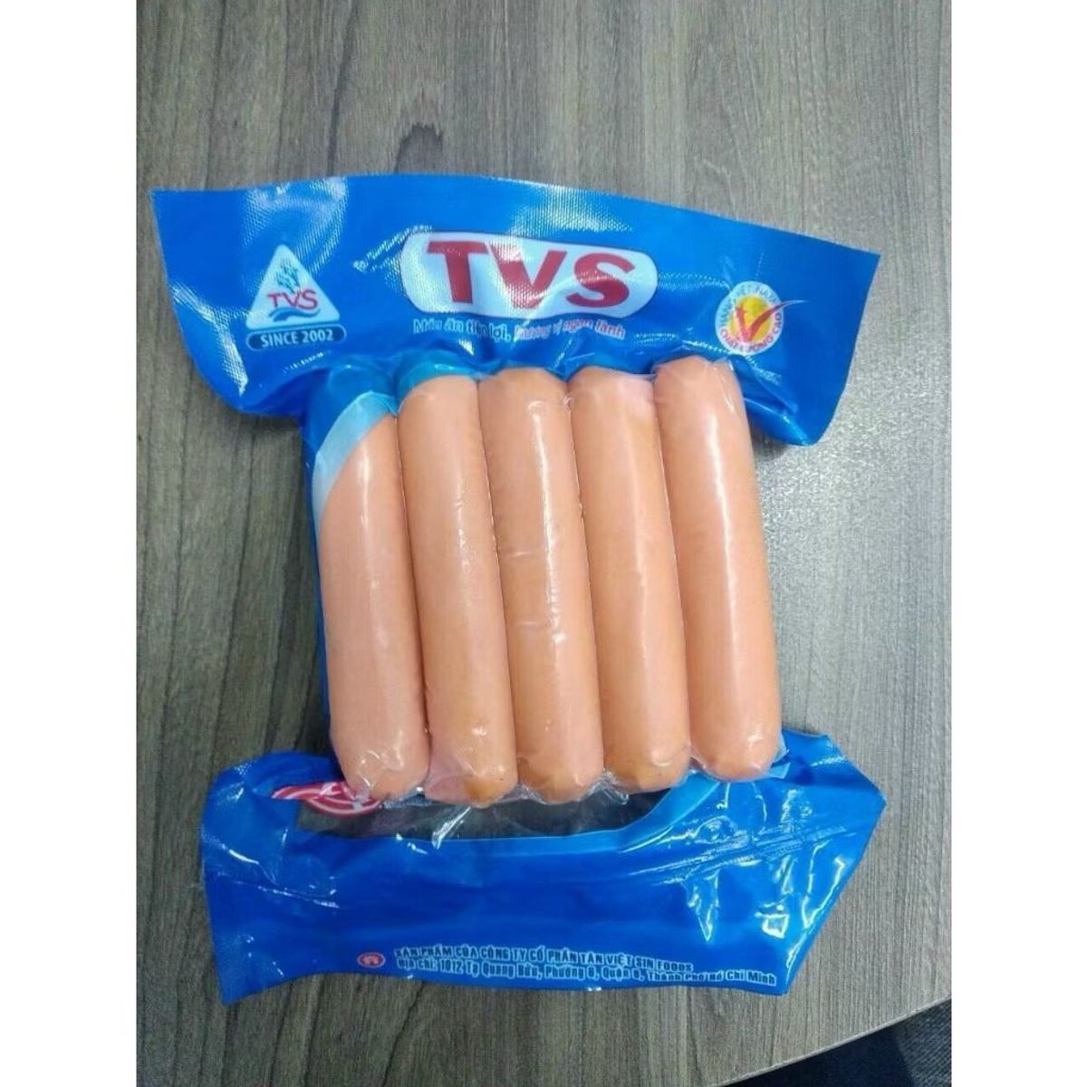 Thông tin thành phần của Xúc xích Veal Tân Việt Sin – Thịt heo (80%), mỡ heo (10%), ruột (ruột collagen/ ruột heo khô), tinh bột bắp, muối, đường, chất điều vị (E621), chất bảo quản (E262i) , chất chống oxy hóa (E300, E325, E 30) , chất giữ ẩm (E451i, E452i, 451ii), hương…