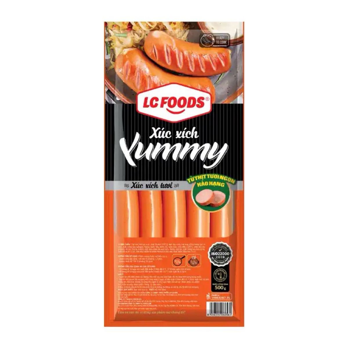 Xúc xích tươi Yummy được làm từ thịt heo, gà xay nhuyễn, thêm các gia vị và qua các công đoạn nấu xông khói đã tạo nên những cây xúc xích với màu vàng cánh gián đẹp mắt kết hợp với hương khói nhè nhẹ được xông khói tự nhiên bằng gỗ sồi. Cảm giác cấu trúc thịt thật dai, giòn, mềm mịn cùng với hương thịt đặc trưng đã mang đến một hương vị thơm ngon, hấp dẫn