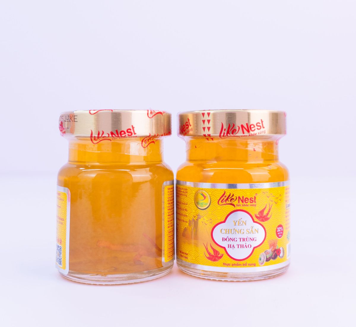 Yến chưng sẵn vị Đông Trùng Hạ Thảo Like Nest 32% là sản phẩm kết hợp giữa 32% tổ yến và đông trùng hạ thảo, hai loại thực phẩm bồi bổ hàng đầu trong Đông y.