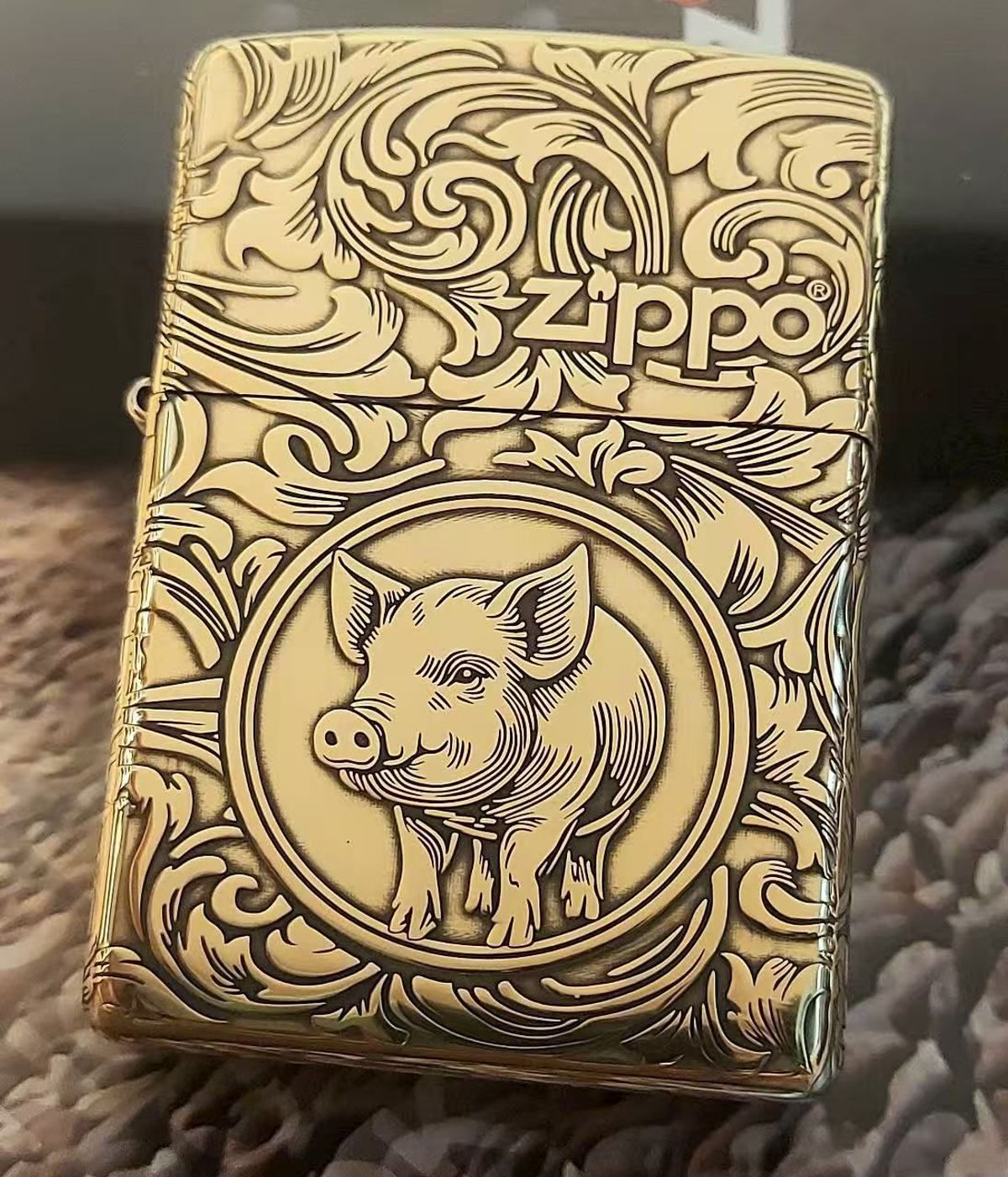 Zippo đồng khối khắc 12 con giáp mộc đấy chu niên 85 giá sỉ - giá bán buôn