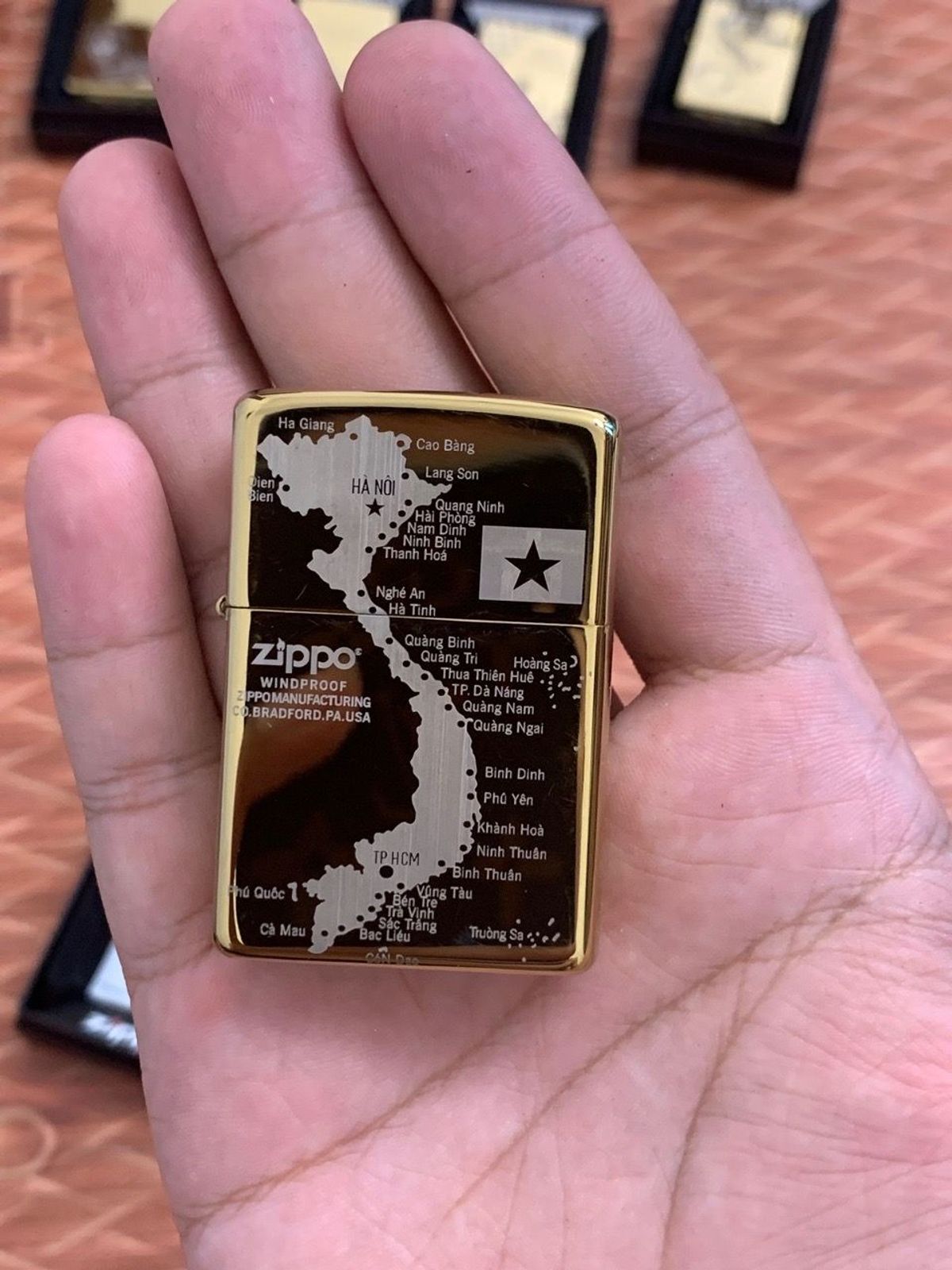 Zippo mạ vàng 9 lama khắc bản đồ vn giá sỉ/bán buôn